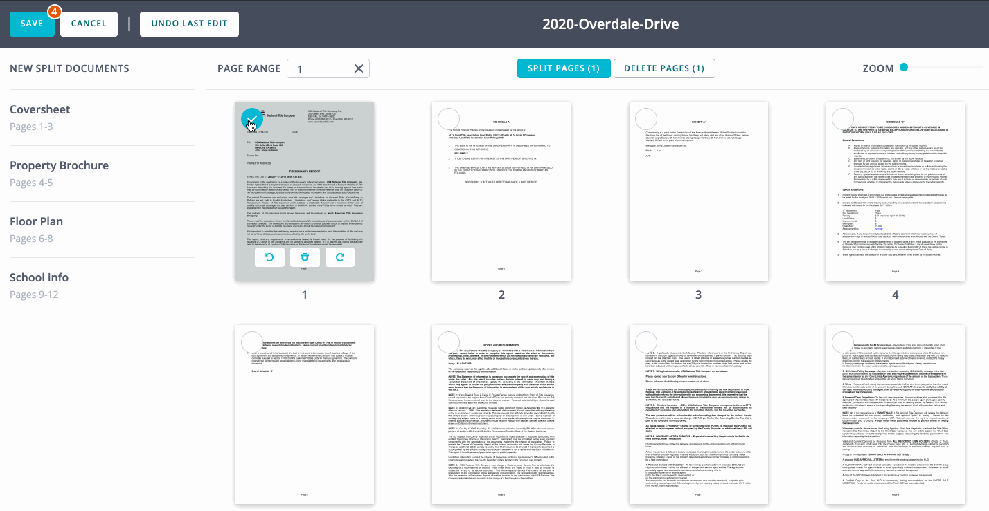 One of the biggest challenges in real estate is paperwork. Large documents that are often transitioning from printed to electronic usually end up as one big PDF, which is both hard to share and hard to read. To solve this problem we built a feature that allows agents to quickly split big PDFs into multiple, individual documents.